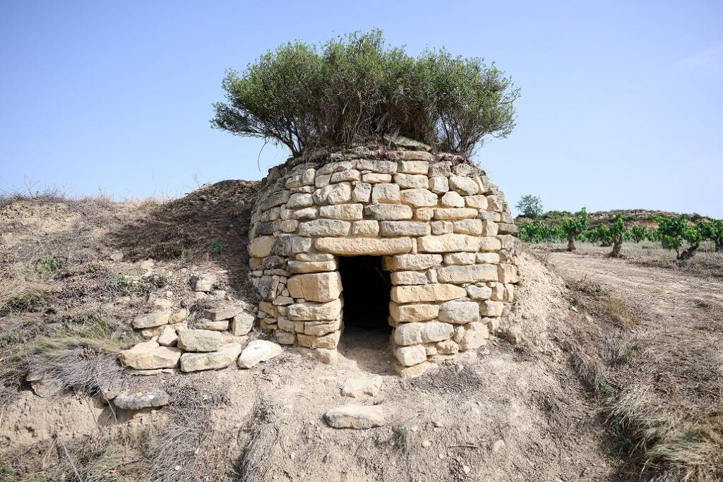 The chozos are small stone constructions used by farmers as shelters to tend and watch over their crops. They are also known as “guardaviñas” (vineyard shelters) because they were often used by the vineyard watchman, who slept inside to ensure that livestock did not damage the vines. They also served as shelters, storage spaces, and more. Although there are several types, most are simple circular structures that narrow toward the top and are built without the use of any mortar—a technique known as dry stone construction.